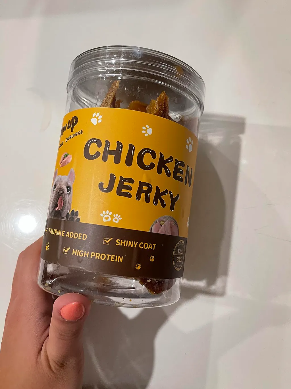 - Taurine Added: Give your dog this taurine contained Chicken Jerky to help improve brain development, retina protection and heart improvement of your little pup