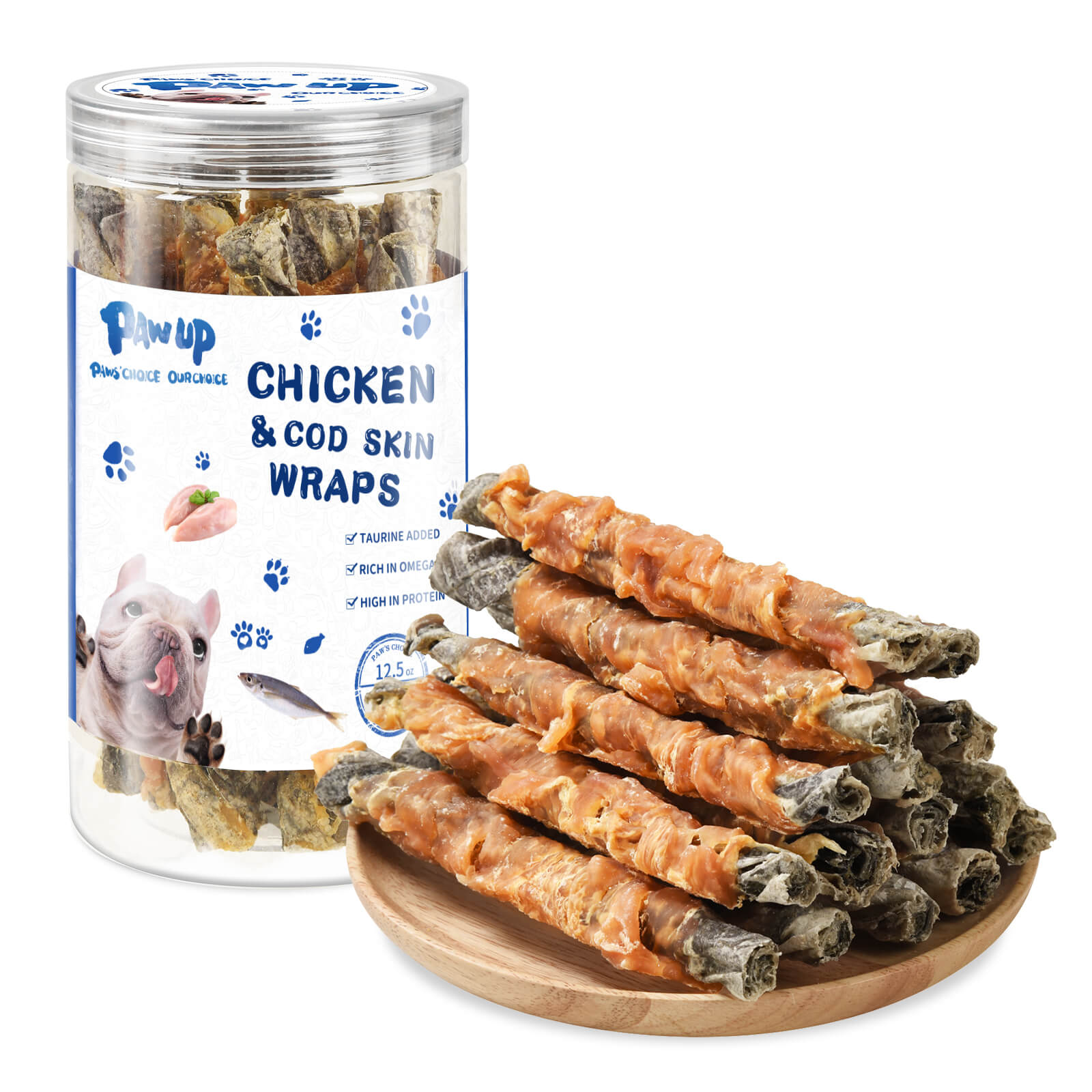 PAWUP Cod Dog Treat, Chicken Wrapped Cod Skin Chew Fish Rolls, 12.5 oz