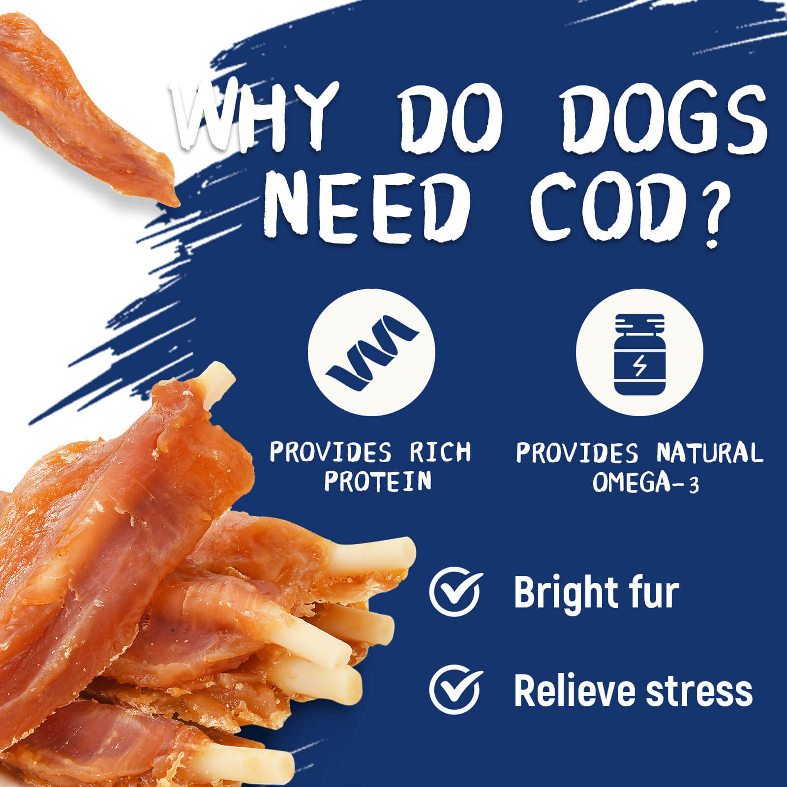 - Nutritious with Added Taurine: Cod is rich in protein and Omega-3 fatty acids, suitable for dogs of all ages to make their coat shiny. Adding 1% taurine to snacks will provide great help for the health of the heart, eyes, and joints