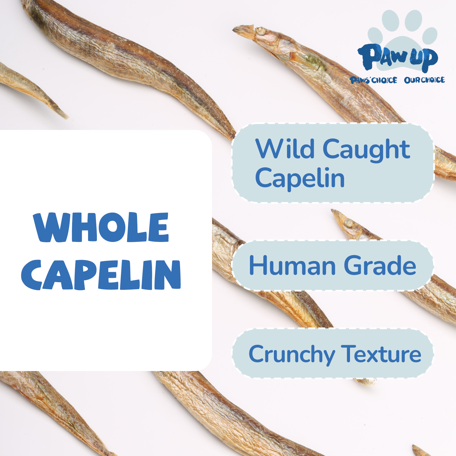 PAWUP Freeze Dried Capelin Dogs Treats – Raw Single Ingredient Dog Fish Snacks, Rich in Omega-3 for Skin & Coat Health, Grain Free, 3.5oz
