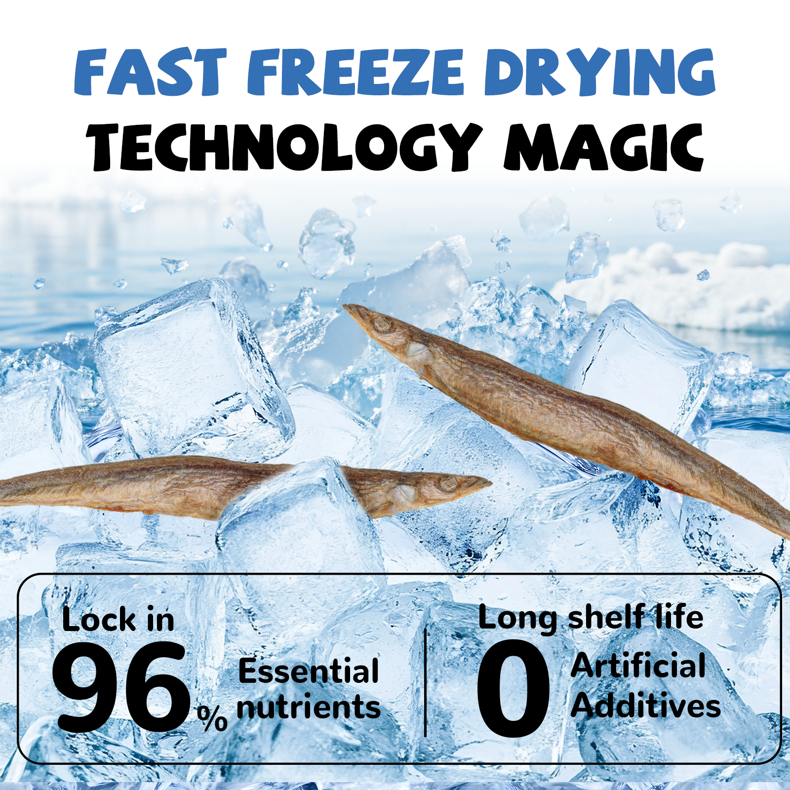 - Locks in Nutrition: Our advanced freeze-drying process gently removes moisture while locking in the natural nutrition and flavor of both fish and roe. This ensures a longer shelf life without compromising quality, giving your pet a raw-like taste experience packed with essential nutrients for daily energy and vitality