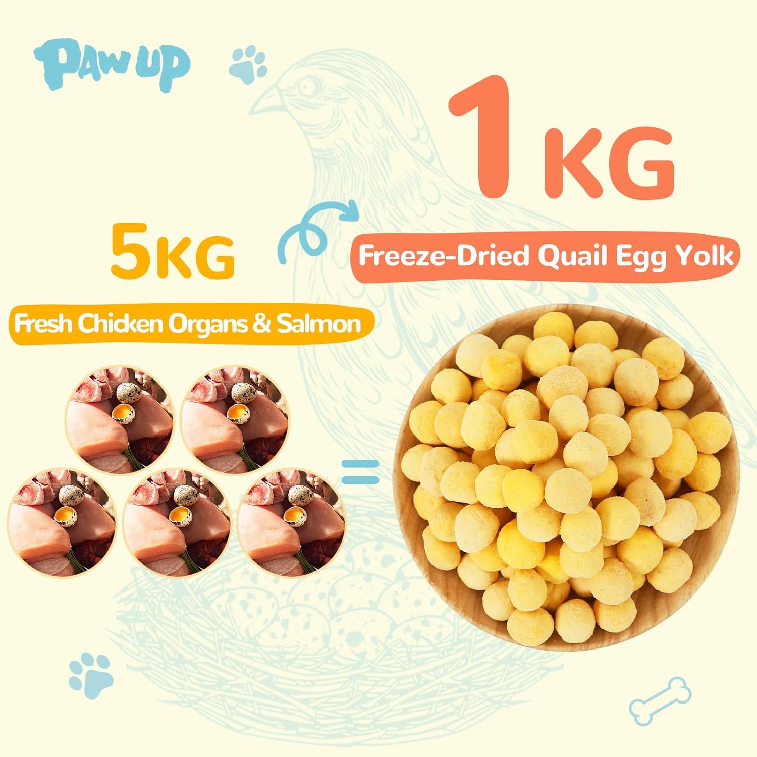 - 🐕Pure Quail Egg Yolks: PAWUP's freeze-dried pet treats are made with only premium quail egg yolks sourced from free-range quails. These yolks provide a high-quality protein source, giving your pets the essence of quail yolk in every bite.