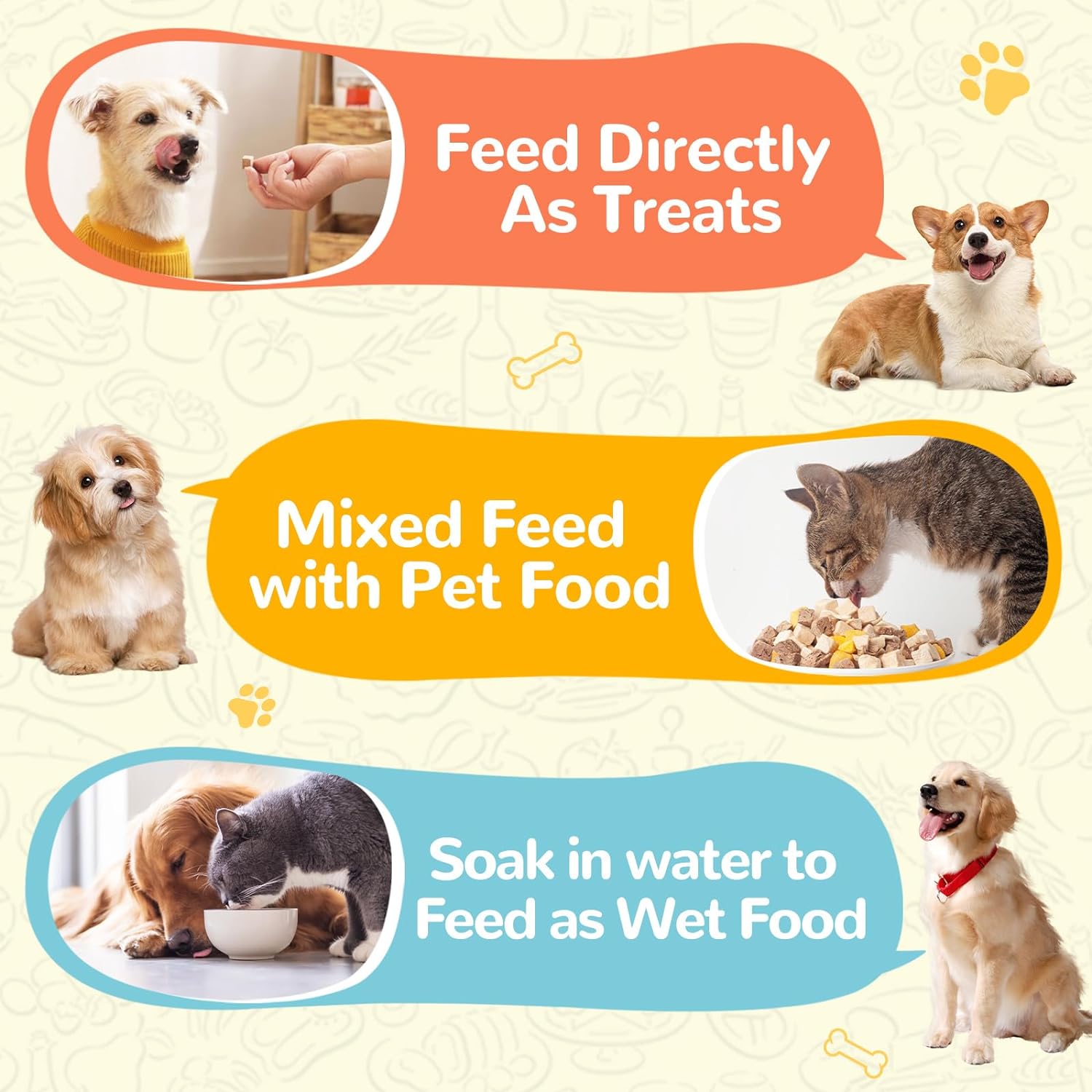 - 😋Variety of Flavor: Whether given whole, crumbled for added flavor, or rehydrated to enhance the meaty aroma, PAWUP freeze dried treats offer a variety of feeding options. You can also choose different freeze dried treats from PAWUP to supply multiple flavor and comprehensive nutrition to your beloved furry pets